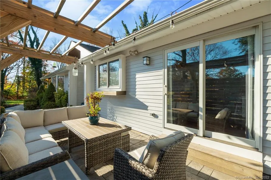 0.92 acres in New Haven County, Connecticut LOCATION IS KEY!! Only 1 mile away from town! This Spacious ranch is aimed to please. Enjoy this homes tranquility inside or outdoors with a private fenced in yard with a wrap around porch and a blue stone patio with a firepit area for those cold nights in New England. The living room has custom bookcases, a custom mantel fireplace and sliders that access the deck. The Kitchen is open to the dining room with marble countertops, breakfast bar, stainless steel appliances, and classic white subway tile. The dining room boasts of natural light from the skylights to the sliders that lead out to a patio with a pergola for an outdoor relaxing space. Three spacious bedrooms and three full bathrooms. The primary bedroom has a full en-suite and sliders leading to the deck with a back drop of beautiful trees. One full bath in the hall and one bedroom has a full en-suite with a soaker tub and shower...LOCATION IS KEY!! Only 1 mile away from town! This Spacious ranch is aimed to please. Enjoy this homes tranquility inside or outdoors with a private fenced in yard with a wrap around porch and a blue stone patio with a firepit area for those cold nights in New England. The living room has custom bookcases, a custom mantel fireplace and sliders that access the deck. The Kitchen is open to the dining room with marble countertops, breakfast bar, stainless steel appliances, and classic white subway tile. The dining room boasts of natural light from the skylights to the sliders that lead out to a patio with a pergola for an outdoor relaxing space. Three spacious bedrooms and three full bathrooms. The primary bedroom has a full en-suite and sliders leading to the deck with a back drop of beautiful trees. One full bath in the hall and one bedroom has a full en-suite with a soaker tub and shower. Additional 1210sq feet in the finished lower level gives you tons of room with a wet bar and a walk out. Newer roof, newer furnace, new water heater, HVAC, Expansion tank, Reverse osmosis drinking water system. This property has everything your looking for! close to highways, shopping, trails, beaches, lakes, museums and the Guilford Green. Come see what this great home has to offer!+ Show More