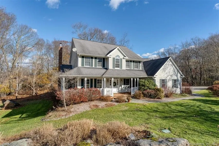 2.17 acres in New Haven County, Connecticut Located just a short 1.5-mile drive or bicycle ride from Guilfords historic Village Green, this gracious Colonial home feels a world away, virtually unseen from the street in a quiet enclave of three quality homes. Built in 2001 and lovingly and meticulously maintained and updated, a welcoming wraparound front porch greets visitors before they enter the spacious foyer with formal living room to the left, currently a music room, and dining room to the right. The flow of the home is ideal for entertaining, gatherings on a large or small scale, with French doors leading from the living room to an open floor plan kitchen, updated with stainless steel appliances, and family room with fireplace, the heart of the home, with French doors leading to a length-of-the-home back deck. The upper-level features four good-sized bedrooms, including the primary bedroom suite with vaulted ceiling, two walk...Located just a short 1.5-mile drive or bicycle ride from Guilfords historic Village Green, this gracious Colonial home feels a world away, virtually unseen from the street in a quiet enclave of three quality homes. Built in 2001 and lovingly and meticulously maintained and updated, a welcoming wraparound front porch greets visitors before they enter the spacious foyer with formal living room to the left, currently a music room, and dining room to the right. The flow of the home is ideal for entertaining, gatherings on a large or small scale, with French doors leading from the living room to an open floor plan kitchen, updated with stainless steel appliances, and family room with fireplace, the heart of the home, with French doors leading to a length-of-the-home back deck. The upper-level features four good-sized bedrooms, including the primary bedroom suite with vaulted ceiling, two walk-in closets, and expansive spa bathroom. Not to be overlooked: a main level study as well as more than 500 sq ft of finished lower-level space with walk-out, currently used as home office and exercise room, plus additional ready-to-be-finished areas. This special home in move-in condition is only minutes from shopping, restaurants, highways, town beach and train station. Copyright 2022 SmartMLS, Inc. All rights reserved. All information provided by the listing agent/broker is deemed reliable but is not guaranteed and should be independently verified.+ Show More