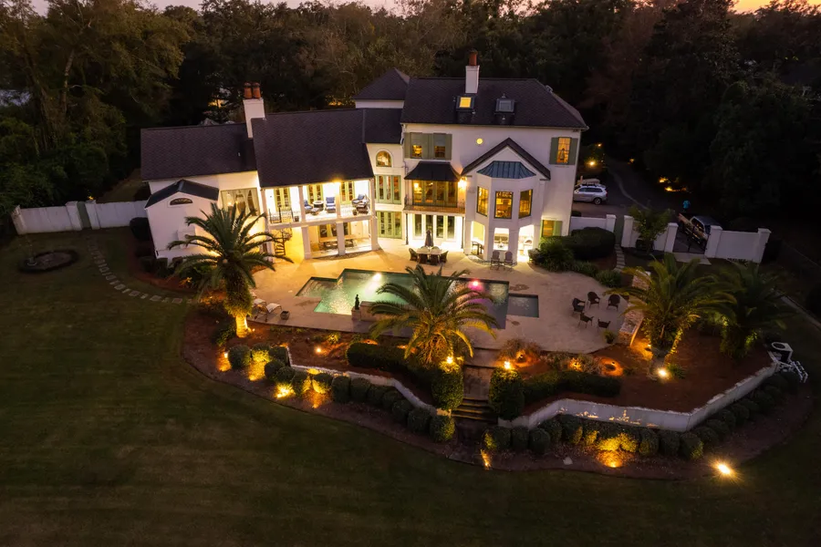 Beautiful Estate in the Heart of Springhill Designed by Fritz von Osthoff and built by Bill Cherry, this sophisticated estate home is a rare oasis in the heart of Springhill offering acreage, privacy and convenience. So beautiful and unique, the 3 story atrium and skylights flood the home with natural light. Heart of pine flooring throughout the main living area combined with soaring in-laid wood ceilings, wood beams, and 3 Rumford fireplaces (5 total)create an open and welcoming space overlooking the private backyard and pool area. The main level owner's suite is perfection with a private office and paneled study. There are 2 separate walk-in closets with built-ins and new stackable washer and dryer. Additionally, there are separate bathroom spaces including 2 separate toilets, a large soaking tub and shower. The owner's bedroom area has a beautiful fireplace as does the study. The office area is stunning with built-in desk, frid...Designed by Fritz von Osthoff and built by Bill Cherry, this sophisticated estate home is a rare oasis in the heart of Springhill offering acreage, privacy and convenience. So beautiful and unique, the 3 story atrium and skylights flood the home with natural light. Heart of pine flooring throughout the main living area combined with soaring in-laid wood ceilings, wood beams, and 3 Rumford fireplaces (5 total)create an open and welcoming space overlooking the private backyard and pool area. The main level owner's suite is perfection with a private office and paneled study. There are 2 separate walk-in closets with built-ins and new stackable washer and dryer. Additionally, there are separate bathroom spaces including 2 separate toilets, a large soaking tub and shower. The owner's bedroom area has a beautiful fireplace as does the study. The office area is stunning with built-in desk, fridge, and ice maker. Entertaining is a pleasure starting with the chef's kitchen including Sub-zero fridge, Viking gas range top, double ovens, warming drawer, 2 dishwashers, trash compactor, ice maker, wine fridge, and huge pantry. There is plenty of space and storage including a pass through to a Butler's pantry across from the dining room. The home's upper level includes 2 bedrooms with ensuites and large walk-in closets. The lower level of the home is bathed in sunlight from the atrium and includes theater room with Sub-zero fridge, bedroom with ensuite and walk-in closet, built-in bunk beds, tons of storage including a sportman's room with cedar lined closet and large laundry room. There is also a full bath which can be accessed from the theater room or the pool area which is adjacent to the outdoor kitchen and newly constructed fireplace. There's also a basketball half court with new gorilla goal. The outdoor areas are beautifully landscaped with front and back fountains. The three car garage offers additional storage and the generator will keep things going during power outages.+ Show More