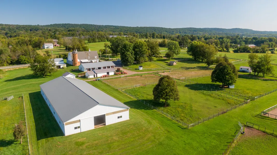 41.88 acres in Hunterdon County, New Jersey Magnificent New Jersey equestrian compound brilliantly set on 40 prime acres. Completed in 2019, the estate renovation/expansion honors the aesthetics of the original circa 1700-1800s historic John Forman farmstead while integrating todays essential technologies. Meticulously crafted millwork, artisan plaster work and hardwoods are thoughtfully repeated throughout the 5-bedroom home where state of the art functionality serves historic beauty. This beautiful compound expands to include the main wide-aisle, 11-12 stall barn with heated wash-stall, tack room and fly system. There are additionally four stalls attached to an historic post and beam hay barn, a 72x180 custom lit indoor arena with washed sand footing plus a 100x200 outdoor ring with a mixture of sand and stone dust footing. The massive former dairy barn currently features a professional veterinary office with second-level...The massive former dairy barn currently features a professional veterinary office with second-level caretaker apartment. Additionally, the property features equipment/storage sheds, four run-in sheds, 13 paddocks fenced with no-climb wire plus acres of actively harvested hay fields. Stunning property finishes with rolling and pastoral views, extensive landscaping, stone/slate/mahogany patios, specimen trees and exquisite perennials. Investors note that should qualified buyers choose, seller seeks to offer generous 5-year leaseback (with option) of the professional offices and the care-taker unit on site or, buyer may occupy the professional space for their own personal enterprise. Farmland assessments in place to transfer. 18 acres of the total parcel filed with separate deed for optional compound expansion. Must provide proof-of funds or proper financing qualifications prior to site visit. Veterinary offices and caretaker unit made available for second showings only. Listing agent must accompany.+ Show More
