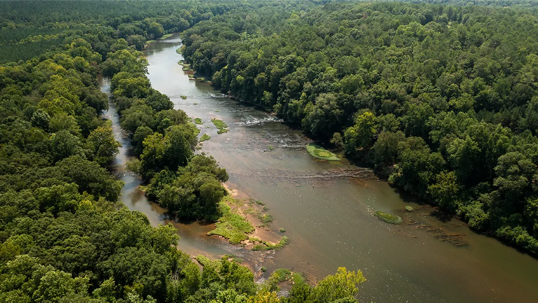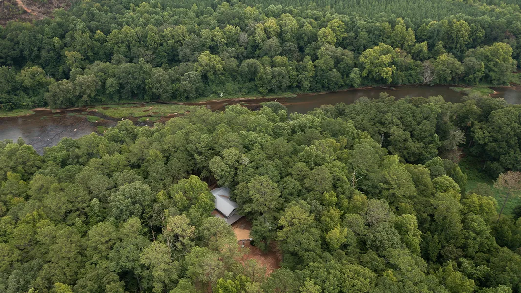 795 acres in Chambers County, Alabama The Mule Shoe Bend Truly one of the most unique and diverse properties in the Southeast. Mule Shoe Bend is an ultra-private property consisting of almost 800 +/- acres located in the northeasterly portion of Chambers County, Alabama. The Shoe is almost completely encased by the flowing waters of the Tallapoosa River. Over three miles of river frontage provides a multitude of options for the landowner, their family, and friends. Whether fly fishing for red eye bass, kayaking, hunting, or enjoying the beautiful views and extensive trail system, this Shoe is truly impressive. Lodge The Shoe has an incredible lodge perched hundreds of feet above the cascading waters of the Tallapoosa River. The views of white topped waves of water rolling over the granite outcropping can be seen and heard from the rocking chairs of the screened porch. The three beds, two bath lodge comes fully furnish...The Shoe has an incredible lodge perched hundreds of feet above the cascading waters of the Tallapoosa River. The views of white topped waves of water rolling over the granite outcropping can be seen and heard from the rocking chairs of the screened porch. The three beds, two bath lodge comes fully furnished, and has an abundance of character, and rustic charm. That rustic charm permeates all aspects of the lodge. Hand-hewn, seasoned logs are exposed on the inside and outside of the dwelling. Those logs having been repurposed from a century old tobacco barn in the hills of North Carolina. Rising majestically from the floor of the living space is a towering 23 ft natural rock fireplace. Large barn beams extend throughout the living space. A newly designed kitchen with granite counter tops, custom cabinetry, and new appliances gives a modern balance to the heart pine floors and ceilings. From the circle drive, a large, covered porch welcomes you into the mudroom and hunting lockers off the kitchen. Game Deer and turkey roam in abundance. Throughout the expanse of the property, a multitude of green spaces are strategically placed along ridge tops and bottomland areas. A recent addition of a newly completed 15 +/- acre lake will, once filled to full pool, provide yet another valued asset to the Shoes resume. The Mule Shoe Bend also has a 1 acre duck pond resting on the southern banks of Laney Creek. Wood ducks, Mallards, and Teel frequent this watering hole during the fall and winter months. Also, several wild quail coveys can be flushed along the green fields edge and their calls heard drifting among the towering loblolly pines. The Shoe is covered with natural mast producing trees as well as thousands of planted game trees. Sawtooth oaks, pears, plums, Arkansas Black apple, Common persimmon, Japanese persimmon, and Chinese Chestnut trees dot the landscape. Muscadine and scuppernong vines, kiwi plants, and blueberry bushes are also in abundance. The Shoe is 795 +/- acre with an additional 440 +/- acres to its South under lease. The leased property adds miles of river frontage and more hunting opportunities for the land owner.+ Show More