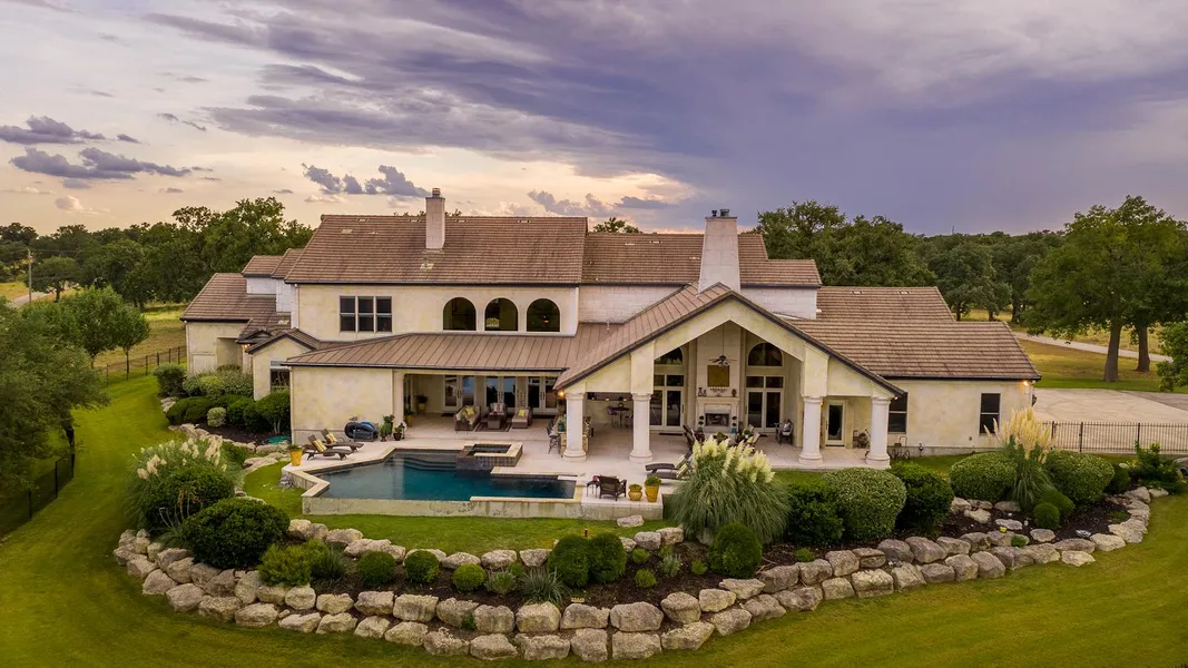53 ac Ranger Creek Estate The Ranger Creek Estate, located in a coveted portion of the Hill Country and minutes from Boerne, offers all the beauty the Hill Country has to offer. The 8,420 sq. ft home offers 4 bedrooms, 7 bathrooms, 3 living areas and a 5 car garage. The large covered patio provides spectacular views of the surrounding landscape and pool. Other improvements include an outdoor kitchen and barn. Wildlife species include White-tailed Deer, Axis Deer, Turkey and Dove.
