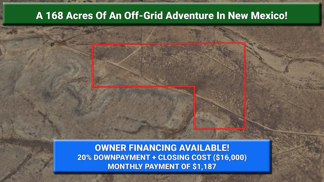A 168 Acres Of An Off-Grid Adventure In New Mexico! Visit our website (www . Debrosland . com) to see ALL the properties we have available! Are you thinking of living in an off-grid place in New Mexico? This 160 Acre property is located in Chaves County, NM. This property has views of an untouched landscape where you can live in a peaceful and quiet place. Life here is simple, work and family is in balance, and there is no heavy traffic. Generally, the residents are very nice. If you're an outdoor enthusiast, you'll never run out of things to do throughout the year. From space rockets to aliens and cowboys to artists and explorers, people of all kinds have crossed paths to outdoor recreation facilities and several walking trails near this behemoth of a property. Soak up the sun and New Mexico scenery with hiking, kayaking, camping, fishing, swimming, paddle boarding, and more! This property is just 30 minutes away from Roswell, New Me...This property is just 30 minutes away from Roswell, New Mexico. Roswell is a growing city that is home to a thriving population of almost 50,000 residents. Roswell is well-known not only for aliens but for local hospitality in welcoming new residents and visitors alike. Roswell is also well known for its excellent Authentic Mexican Cuisine that provides a variety of choices such as their mouth-watering Enchiladas, renowned Hatch Green Chiles, and much more. Roswell not only serves as a great example of cultural inclusion but is also an epicenter for the State Fair that ceases to amaze people every year with its intricate rides and wide varieties of foods and games. Cash price and financing terms are listed below! Call or Text Debrosland anytime at (970) 829-8580 for questions or to purchase this property. Please reference the Debrosland Property ID: NM_chav_O1 **Attention Agents: We pay a 5% commission to any Buyer's Agent that sells this property. We are not a Brokerage, but welcome any and all that would like to do business with Debrosland.** Property Details Property ID: NM_chav_O1 State: New Mexico County: Chaves County Nearest Town: Roswell, NM Street Address: TBD Zip Code: 88203 APN: R008148 Title: Free & Clear Property Taxes: Approximately $32.58/Year Property HOA: N/A General Elevation: 3900 Ft Terrain: Level Zoning: Agricultural - Landlocked Acreage: 167.44 Acres Square Feet: 7,293,686.00 Square Feet Access: No Legal Access Subdivision: N/A Power: No Water: No Sewage: No Gas: Gas Source Phone: Yes Internet: No Stick Build Homes: No Alternative Homes: No Tiny Homes: No RV: No RVing While Building: No Tent Camping: No Property Files: See Attachments How To See The Land You are welcome to visit the property at your convenience while the property is still available. The Property Map is generated using MapRight. You can see the map on your mobile device either using the Apple or Android App, or on your computer. We have the links to download the FREE MapRight App on our website, see our link below to get to the listing page with those links. Should you have any issues, feel free to contact our team for help. Alternatively, you can simply enter any of these GPS coordinates in your favorite mapping software to find it. See below for approximate coordinates: Center: 33.260420, -104.699580 Northwest Corner: 33.262090, -104.70670 Northeast Corner: 33.262220, -104.693210 Southeast Corner: 33.25486, -104.69767 Southwest Corner: 33.254860, -104.697670 Nearby Towns 33 Minutes to Roswell 50 Minutes to Dexter Points of Interest 29 Minutes to J Kenneth Smith Bird Sanctuary and Nature Center 31 Minutes to Cahoon Park 33 Minutes to Alien Zone 33 Minutes to International UFO Museum and Research Center and Gift Shop 33 Minutes to Spaceport Roswell 35 Minutes to Robert H Goddard Planetarium 37 Minutes to Spring River Park 38 Minutes to Roswell Welcome Sign 45 Minutes to Bitter Lake National Wildlife Refuge 53 Minutes to Bottomless Lakes State Park Price Discounted Cash Price: $70,000 + Closing Costs (Approximately $1,000) OR Seller Finance Price: $80,000 + Closing Costs (Approximately $1,000) **Cash Needed To Finance: $16,000 (Down Payment + Closing Costs) **Seller Financing Monthly Payments: $1187 (Includes Interest, Monthly Servicing Charge and Property Taxes) **Seller Financing Loan Duration (in Months): 84 **Please note that all finance arrangements are subject to final approval, if interested inquire with Debrosland. About Us What makes us different? We are Debrosland, a land company that prides itself on giving you a superior land buying website and customer experience. Our company was built on the foundation of our family farm and we are proud to continue on the legacy of land ownership. Small-town values of hard work, integrity and respect are what we stand for. The American Revolution was fought over the right to control our own destiny and we do not take that right for granted. It is an absolute privilege to live in the United States of America and we are proud of our country! We are excited to discuss land investing or any of our properties with you, please contact us anytime or you can check out our inventory at our website. Disclosure Statement Debrosland, its managers, employees and all other affiliates do lengthy research on all properties prior to listing them, in all cases we have not seen the property. All prospective buyers are encouraged to conduct their own due diligence to verify the information provided is accurate and contact the county to confirm that whatever plans you as the buyer have for the property in question are in fact legal, feasible and permitted. Due diligence is the buyers responsibility and all sales are final. To see a full list of our disclosure statement and other notices please visit our Terms & Conditions page.+ Show More